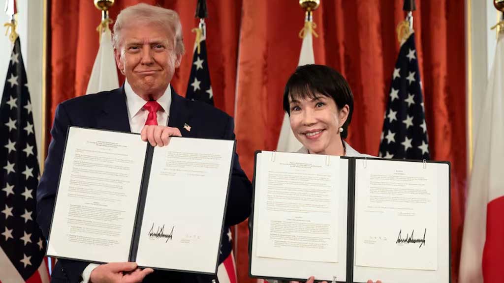 জাপান সফরকালে তাকাইচির সামরিক সক্ষমতা বাড়ানোর অঙ্গীকারকে ট্রাম্প স্বাগত জানিয়েছেন এবং বাণিজ্য ও বিরল খানিজ নিয়ে গুরুত্বপূর্ণ চুক্তিতেও সই করেছেন।