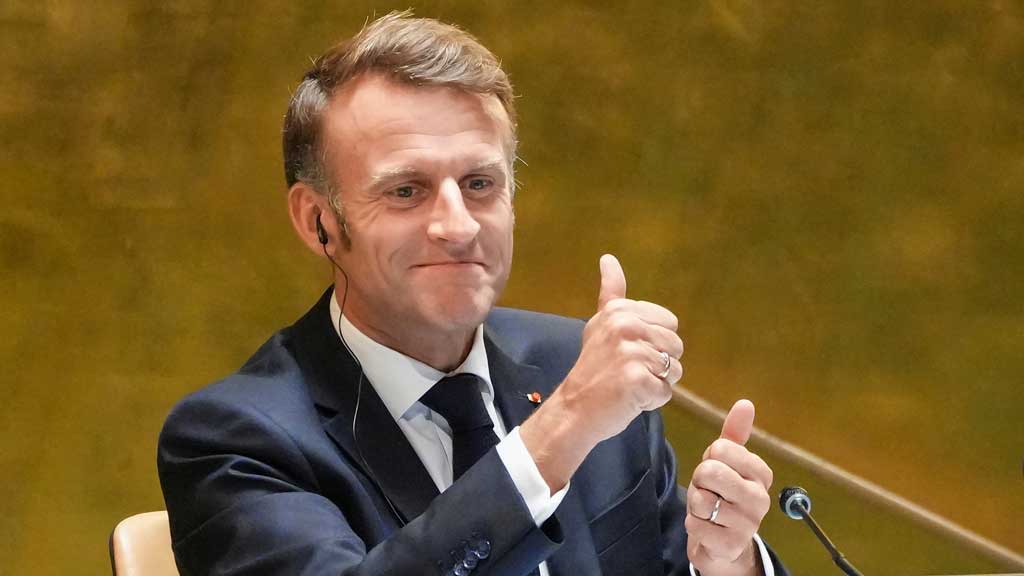 নিউ ইয়র্কে জাতিসংঘের সদরদপ্তরে ফ্রান্সের প্রেসিডেন্ট এমানুয়েল মাক্রোঁ। ছবি: রয়টার্স