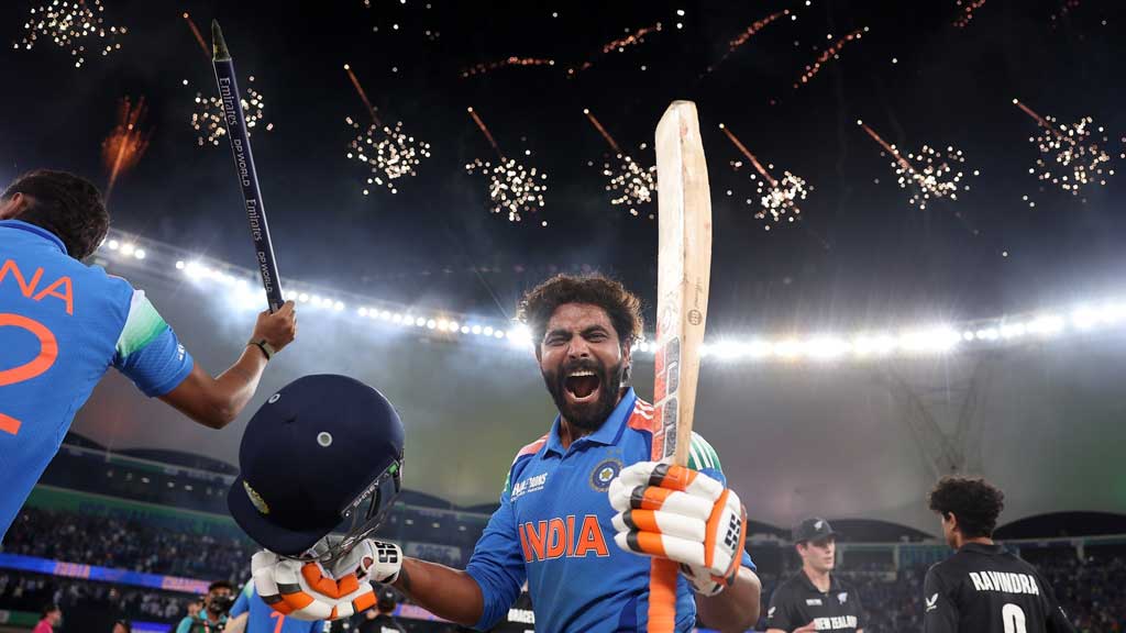 চ্যাম্পিয়ন্স ট্রফি জয়ের পর রাভিন্দ্রা জাদেজার উল্লাস। ছবি: ইন্ডিয়ান ক্রিকেট টিম ফেইসবুক।