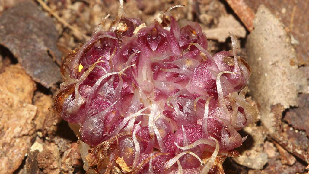 এর আবাসস্থল হওয়ার সম্ভাবনা আছে এমন জায়গার মাটি খুব সাবধানে সরিয়ে সাধারণত এ অর্কিডের ফুল খোঁজা হয়। এসব ফুল মাটির নিচে লুকানো থাকে এবং এর ফুল ছোট আকারের ও লালচে রঙের। ফুলগুলো ক্রিম ও গোলাপি রঙের পাতার মতো আবরণের ভেতরে মোড়ানো থাকে।