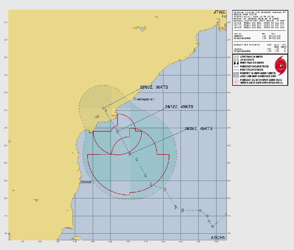 মঙ্গলবার সন্ধ্যা থেকে রাতের মধ্যে এ ঘূর্ণিবায়ুর চক্র ভারতের অন্ধ্র প্রদেশের উপকূল অতিক্রম করতে পারে।