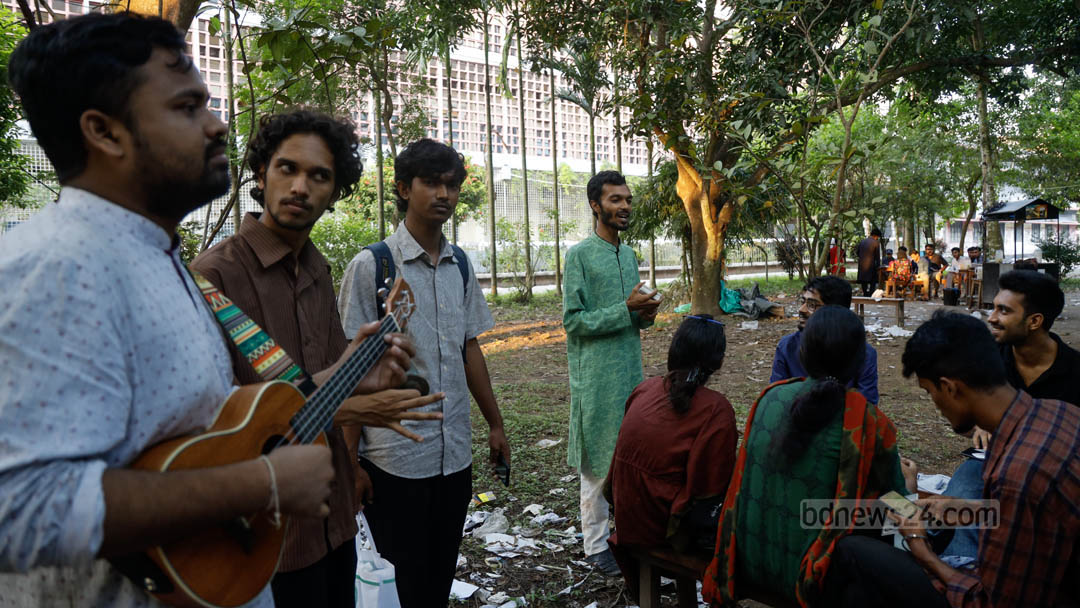 মঙ্গলবার বিকালে রাকসু নির্বাচনের প্রচারের শেষ দিনে ছাত্রদল সমর্থিত প্যানেলটির এই প্রার্থী যখন গানে গেয়ে প্রচার চালাচ্ছিলেন, তখন চায়ের দোকানে তখন আড্ডায় মেতেছিলেন বিশ্ববিদ্যালয়ের কয়েকজন শিক্ষার্থী।