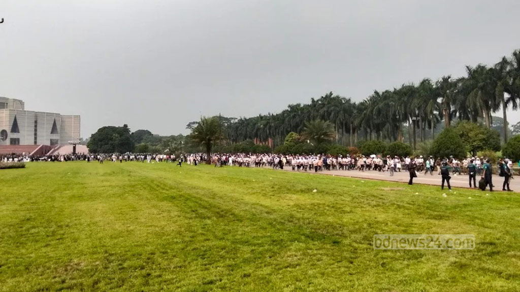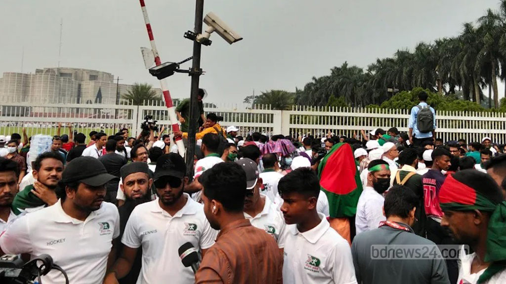 শুক্রবার সকালে তারা জাতীয় সংসদ ভবনের প্রবেশের ফটক টপকে ভেতরে ঢুকে পড়ে কয়েকশ মানুষ। একপর্যায়ে তারা দক্ষিণ প্লাজায় সনদ স্বাক্ষর মঞ্চের সামনে পৌঁছে যান।