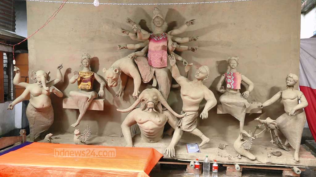 এখন দুর্গাপূজার আয়োজন সম্পন্ন করতে শেষদিকের প্রস্তুতি চলছে। রং তুলির আঁচড়ে দেবী দুর্গাকে সাজিয়ে তুলছেন প্রতিমা শিল্পীরা।